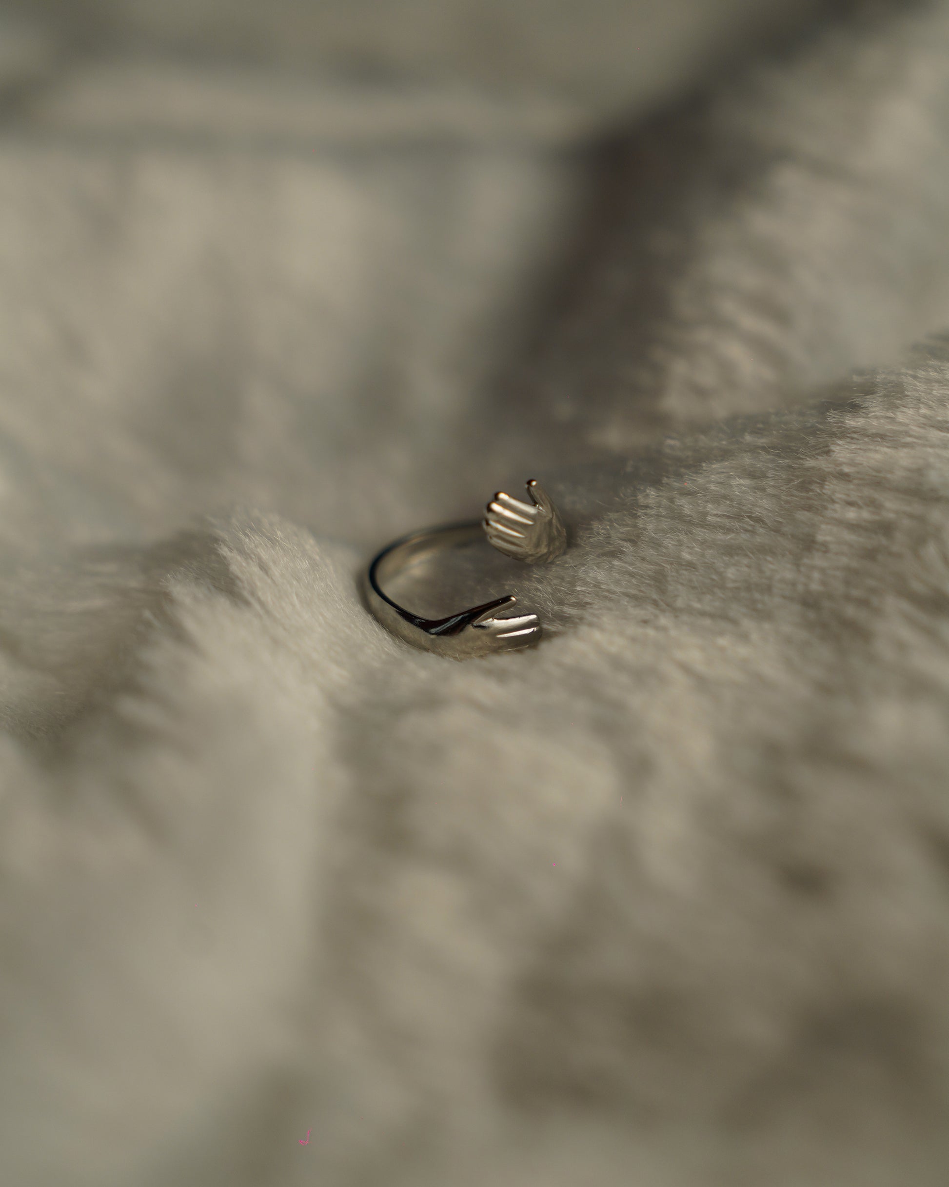Two sculpted hands reaching gently toward each other — a moment frozen in time. This ring is more than a design — it’s a symbol of connection, longing, and synchronicity.